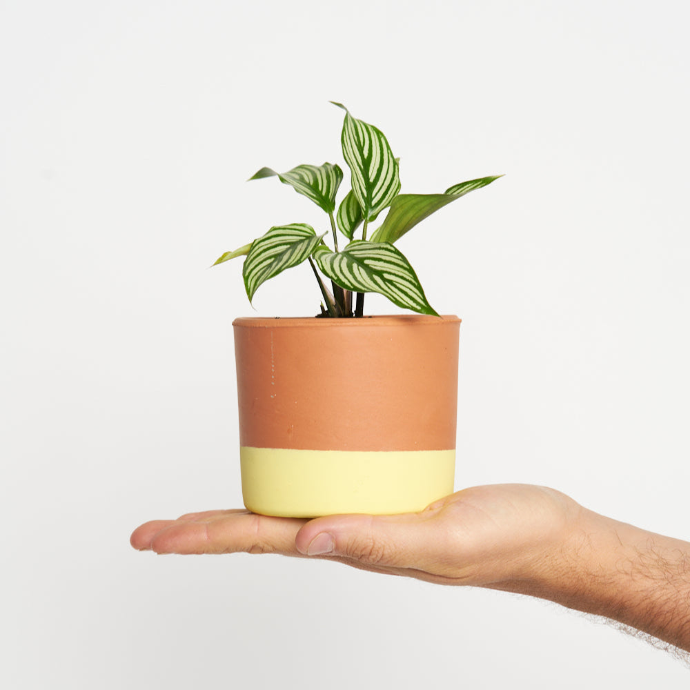 Proviene de ambientes tropicales, así que la Calathea Vittata es feliz entre 18 y 26 °C. Evita corrientes de aire y ambientes secos.