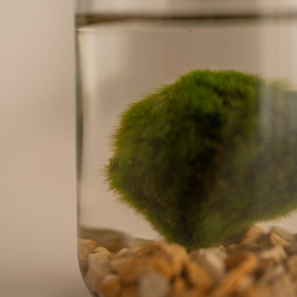 Originario de los lagos fríos de Japón, Islandia y Europa del Norte, el Marimo se forma de manera natural gracias al movimiento suave del agua.