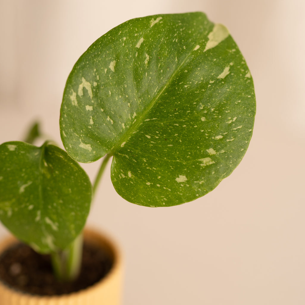Esta monstera variegada tan especial es, sin lugar a dudas, una de las plantas más complicadas de encontrar, y esto sucede porque es una planta muy muy demandada... y no le faltan motivos para ello. Por un lado, hablamos de una de las miniplantas de interior exóticas más exuberantes que existen. Por otro, los cuidados de la monstera facilitan muchísimo su disfrute. Porque, lejos de cualquier apariencia, lo cierto es que hablamos de una de las plantas verdes más sencillas de cuidar. La variegcion que tiene la hace destacar dentro de las monsteras.